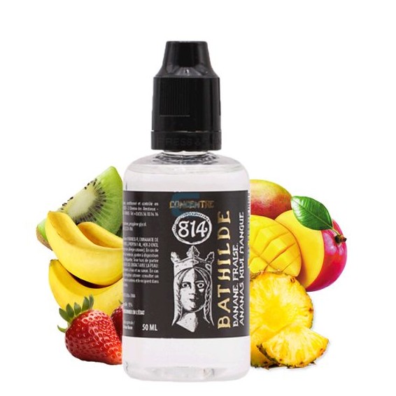 23,55 €Le concentré Bathilde 50ml de 814 est un arôme DIY français mêlant fraise, banane, ananas, kiwi et mangue. Conçu pour être dilué dans une base neutre (dosage conseillé 20%).