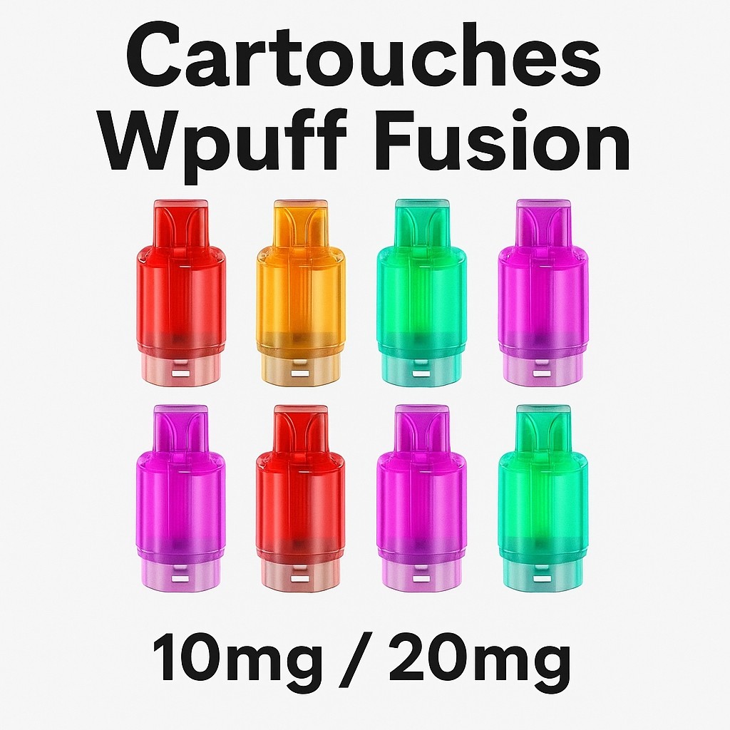 Cartouche Wpuff Fusion 10ml – Liquideo : recharge officielle pour puff 15000, 10mg ou 20mg de nicotine, saveurs variées.